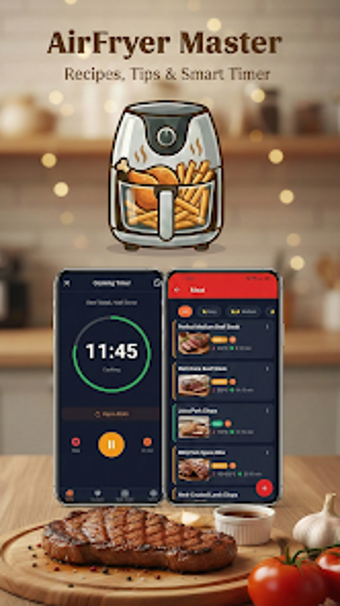 에어 프라이어 레시피 요리 타이머는 맛있고 기름 없는 식사를 준비하려는 건강을 생각하는 사용자를 위해 설계된 무료 Android 앱입니다. 이 앱은 저탄수화물 및 케토 옵션을 포함하여 다양한 식단 선호도를 충족하는 200개 이상의 쉬운 레시피를 제공합니다. 앱에는 사용자가 식사에서 지방 함량을 크게 줄이면서 완벽하게 바삭한 결과를 얻을 수 있도록 보장하는 독특한 '뒤집을 시간' 알림 시스템이 포함되어 있습니다. 닭고기, 채소, 심지어 디저트를 포함한 다양한 요리에 대한 단계별 지침이 제공되어 이 앱은 바쁜 가족과 식사 준비 애호가에게 이상적입니다.